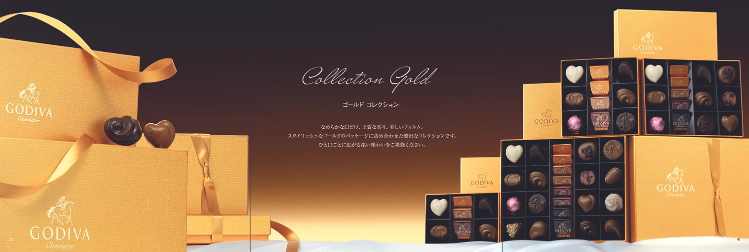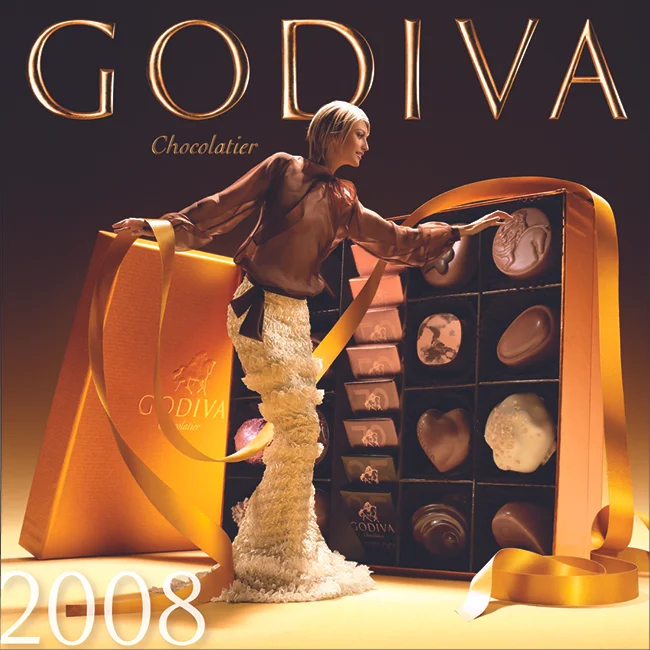 Imagine yourself as a small figurine in a playful world of Godiva chocolate, boxes and ribbons surrounding you like huge sculptures.
