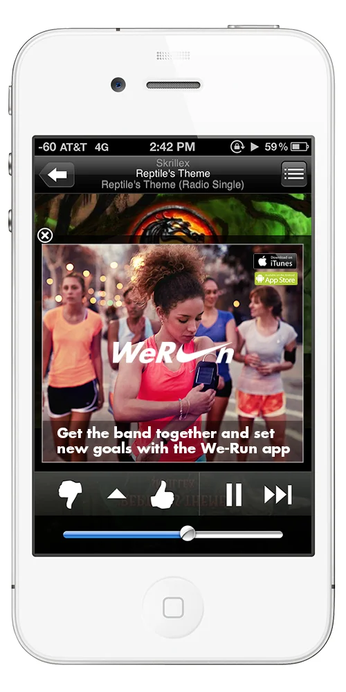 So, we developed a social community that combines athletic ambition with the shareable nature of music. Nike WeRun is not a traditional campaign. It's not just an app. It's a lifestyle. An opportunity to connect millions of people with their love of running through the shared power of music. With WeRun...share goals, music, challenge friends and even make some new ones.