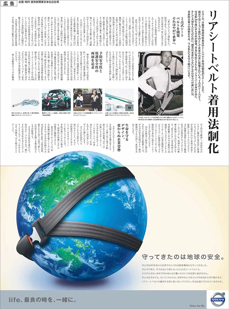 The world standard three point seat belt which Volvo invented is one of our promises to care for your life.